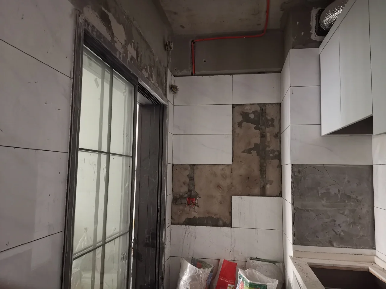 7、水泥砂浆既有黏合的作用,而且会使瓷砖更加的牢固贴瓷砖的时候一定要留缝隙,以后要做美缝处理瓷砖贴上以后,用手锤敲击贴完以后,还不忘把每个都敲一遍看这是墙面贴的瓷砖这是餐厅,全房子到处是瓷砖这是卫生间的效果这是卫生间墙砖,看看师傅的手艺,真心不错在这里还设计了隔板。